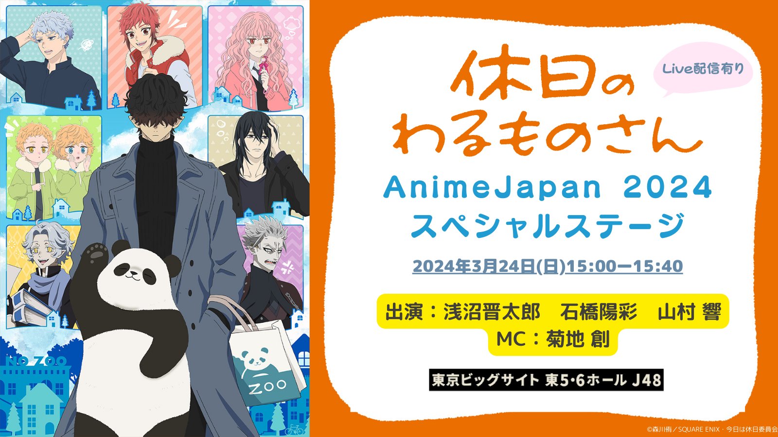 3/24(日) AnimeJapan 2024 休日のわるものさんスペシャルステージ出演決定